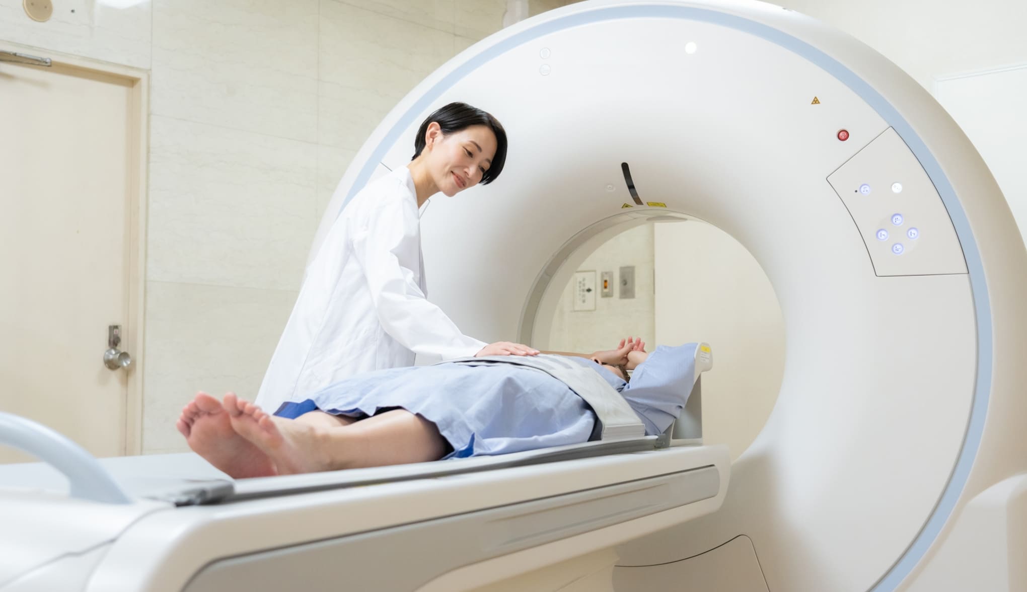 検査機器(CT)で横たわる受診者